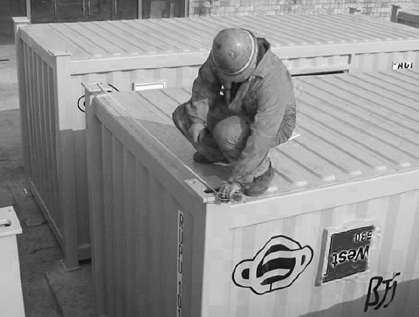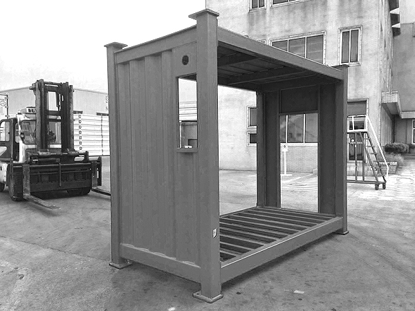 组合式集装箱,在工厂制作成标准规格的部件,按4台/组,打包发运到日本国内。在指定现场组装而成,但与一般集装箱相比,耐用年数等性能略低